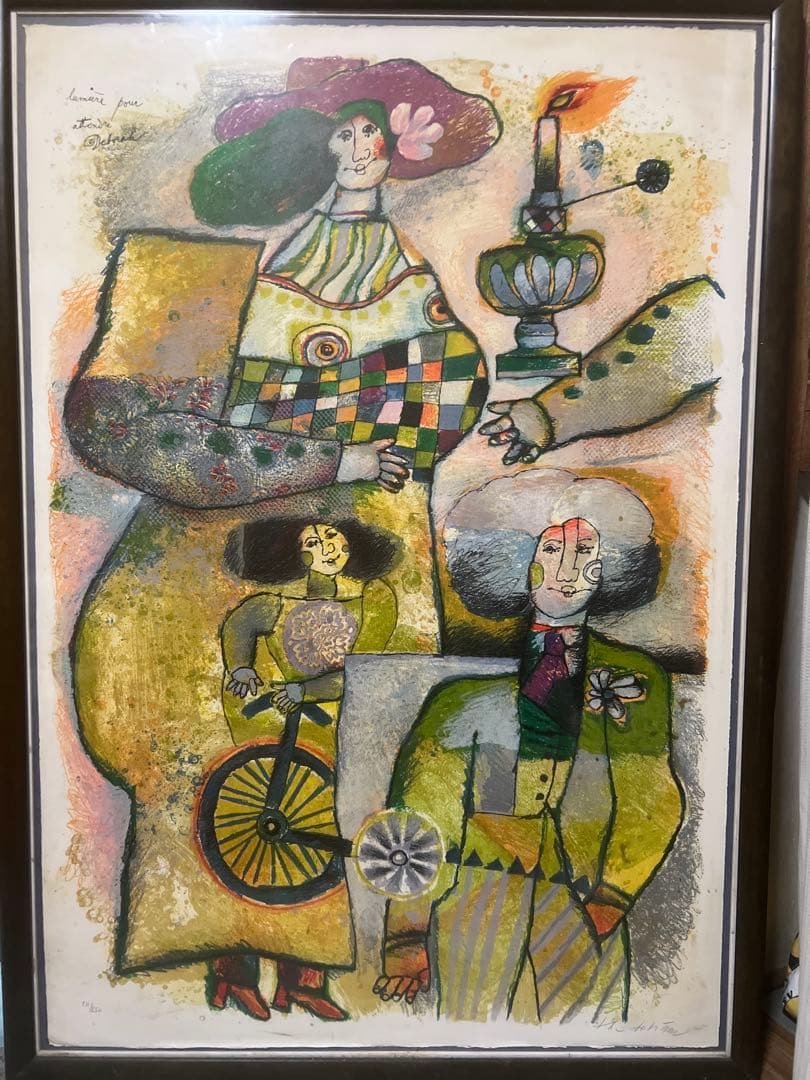 - ローランサンは気に入りの画家のひとりです。今回非常に手ごろな価格で手に入ったので大変満足しています。作家が存命のときではなく、比較的近年に刷られたものであろうということは、摺り師のサインが入っていることで想像できますが、そのおかげできれいな状態でリーズナブルに入手できるのでこんなに良いことはありません。ローランサンの画は現代に通じるモダンな雰囲気があると思っているので、額縁がクラシックなゴテゴテしたものではなく、シンプルなところもよかったです。
